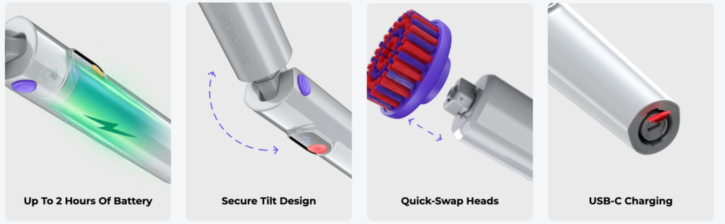 Another benefit is the quick-swap attachment system. Synoshi Pro allows users to change brush heads in seconds, making it easy to move from one surface to another without interrupting the cleaning flow. This flexibility supports a smoother routine, especially when cleaning multiple areas of the home in a single session.